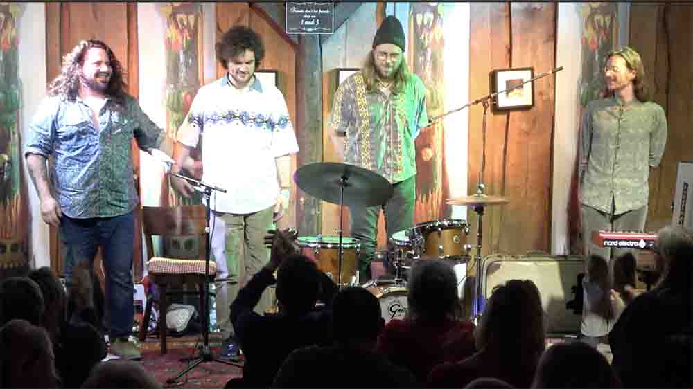 „Midge’s Pocket“, ein Quartett von allerhöchster Güte, debütierte in veränderter Besetzung mit brandneuem Programm im O’wei: In zwei Wochen erscheint ein Album der vier Virtuosen – und viele der darauf befindlichen Eigenkompositionen aus der Feder von Basti Schuhbeck wurden zum ersten Mal präsentiert, noch dazu in einem anderen Gewand, denn die Schuhbeck-Brüder und Bernie Huber entschlossen sich, eine akustische Version ihrer rockigen Songs zu präsentieren. Dabei brillierte der frisch eingewechselte Mann – Axel Hackner – an den Keyboards und vor allem am altehrwürdigen Kneipenklavier, und zeigte auch gesanglich, dass er dem eingespielten Team (Johnny & The Yooahoos) in nichts nachsteht.