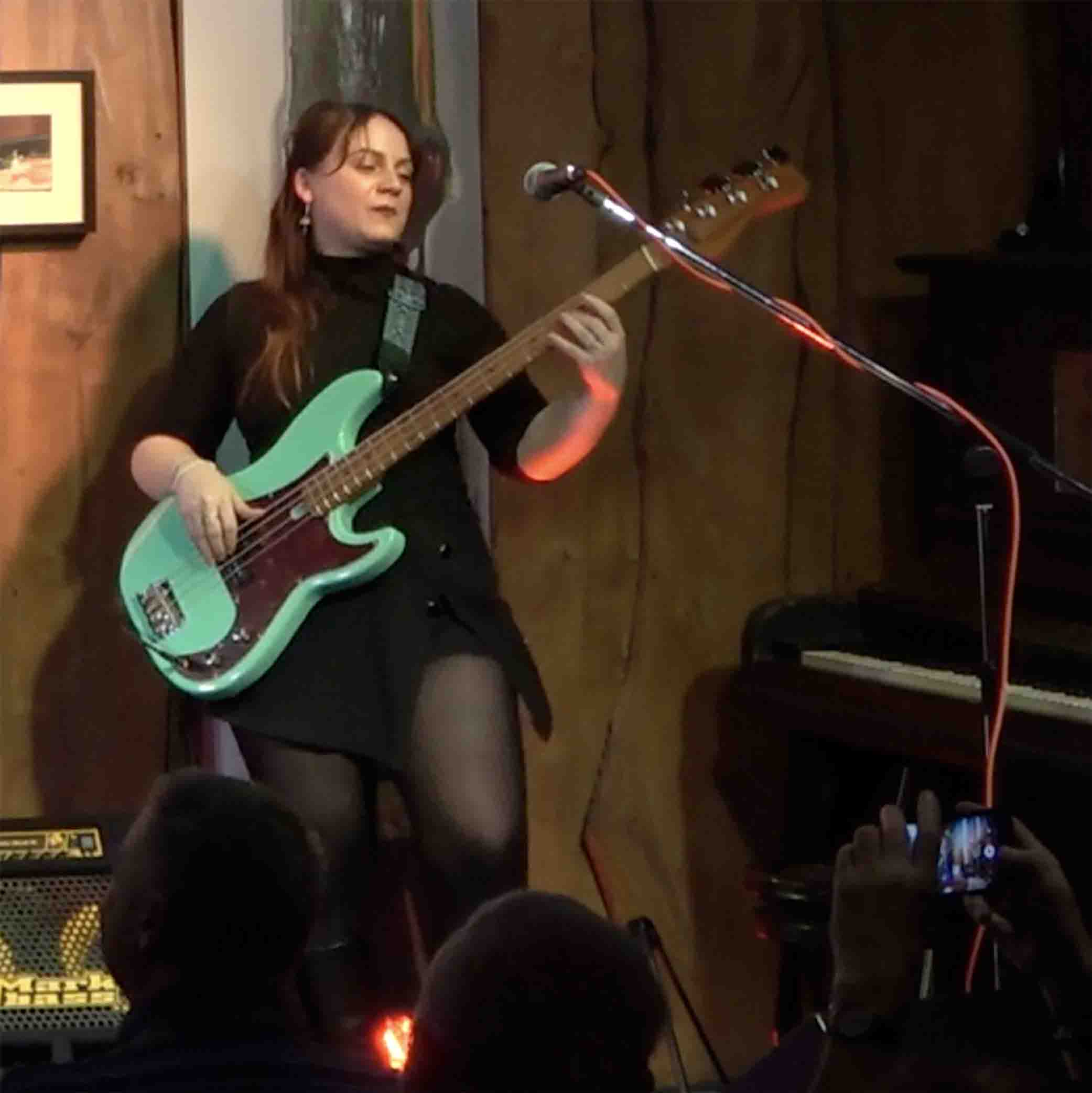 Da ist der Sologitarrist Flo Kenner, mittlerweile Stammgast in der Kneipenbühne. Bei den „Mergers“ und bei „Smokestack Lightnin‘“ erwies er sich im O’wei als absolut stilsicher und mit allen Wassern gewaschen. Schlagzeuger Domi Back brillierte im vergangenen Jahr bei „Muddy What?“. Beide – Flo und Domi – trafen den Ton-Steine-Scherben-Ton exakt! Fürs O’wei-Publikum ganz neu war die Bassistin Marina Porfirio, die traumhaft sicher rhythmische Finessen, komplizierte Breaks und grundgescheite Bassläufe lieferte – ohne Notenblatt, ohne Spickzettel. Notenblätter und Textzettel hatten übrigens auch die drei Männer nicht nötig – und das zeugt immer von immenser Qualität.